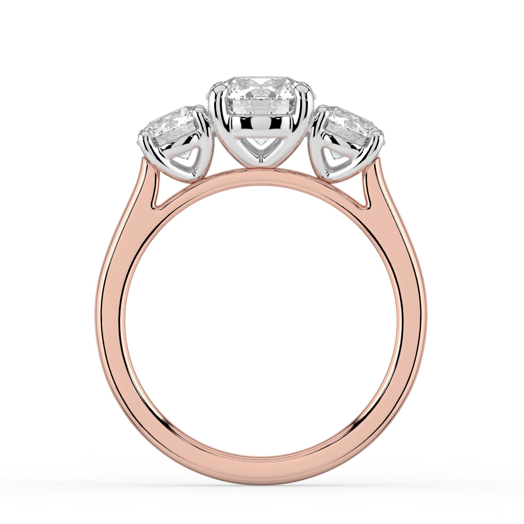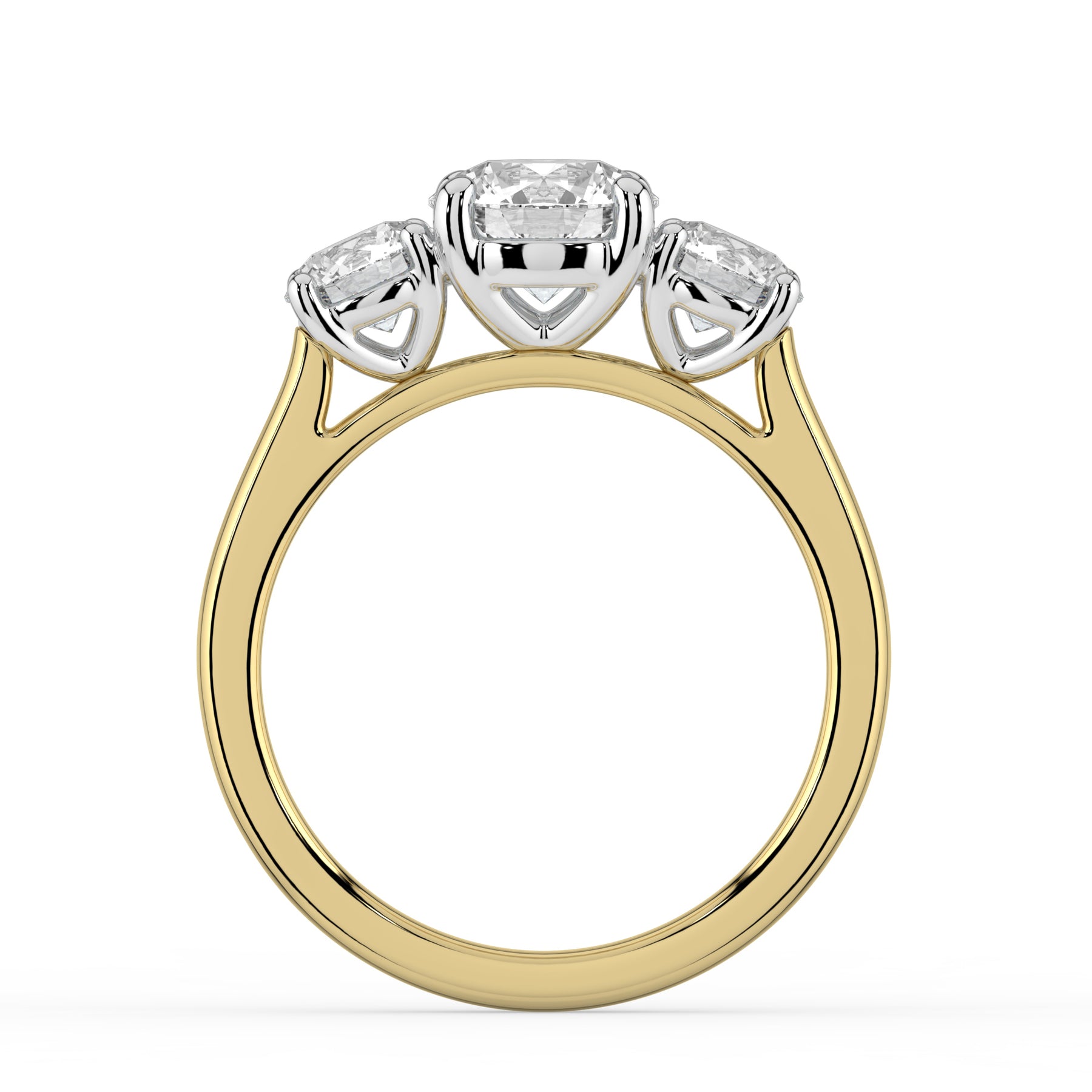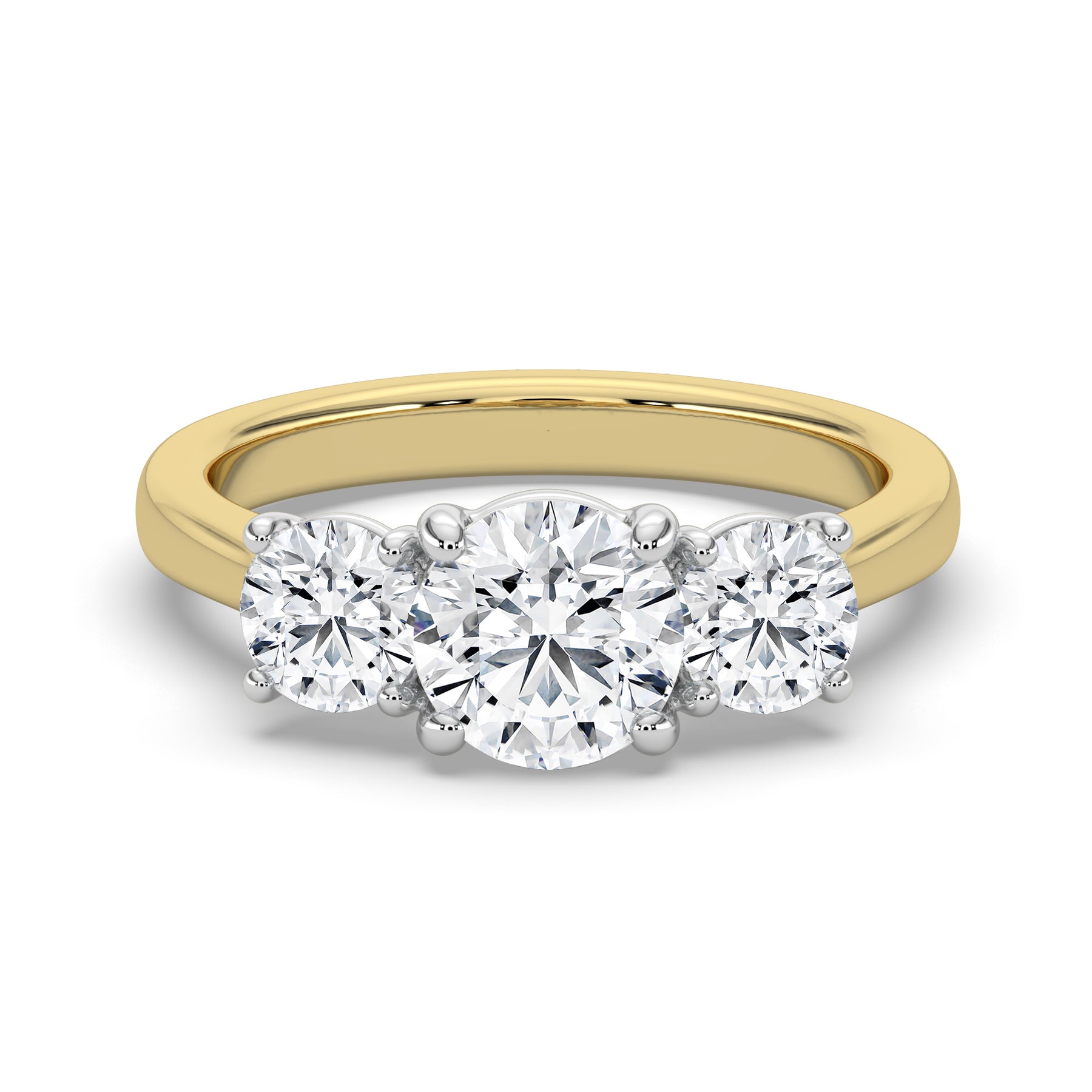 This classic three-stone engagement ring features three round brilliant cut diamonds, symbolizing the past, present, and future of your relationship. Expertly crafted to showcase each diamond’s brilliance, the design balances timeless elegance with meaningful symbolism. Its refined setting enhances the sparkle while providing a comfortable wear, making it an enduring choice for those seeking tradition with sophisticated style.