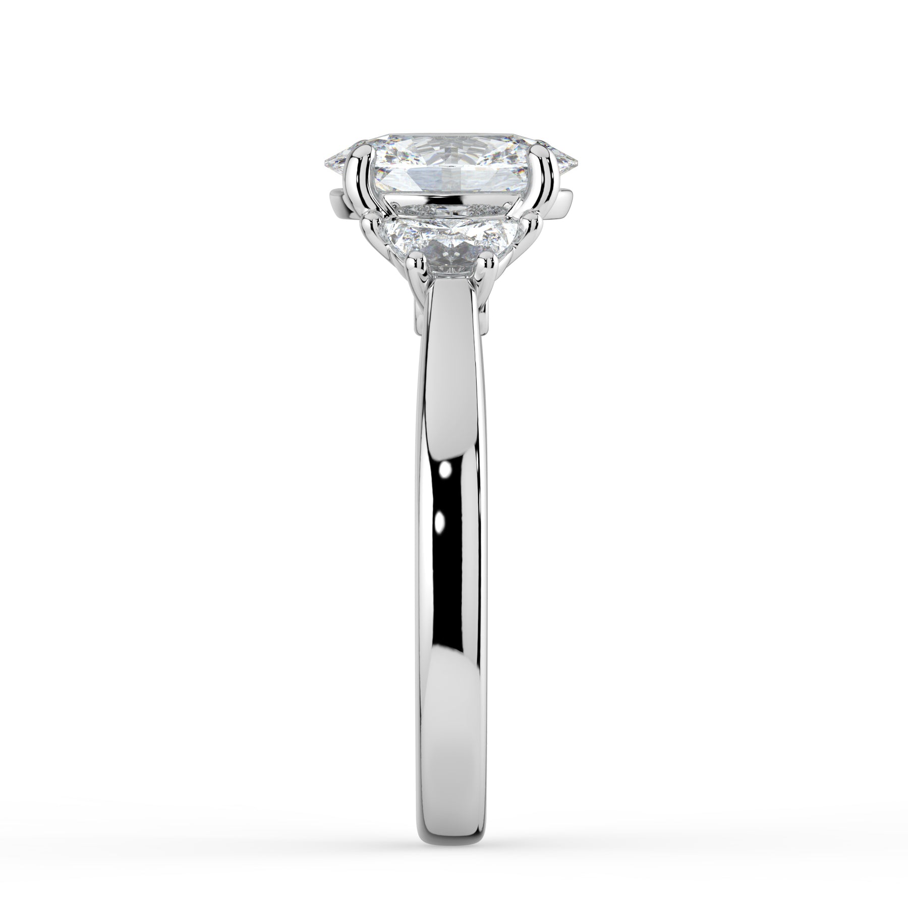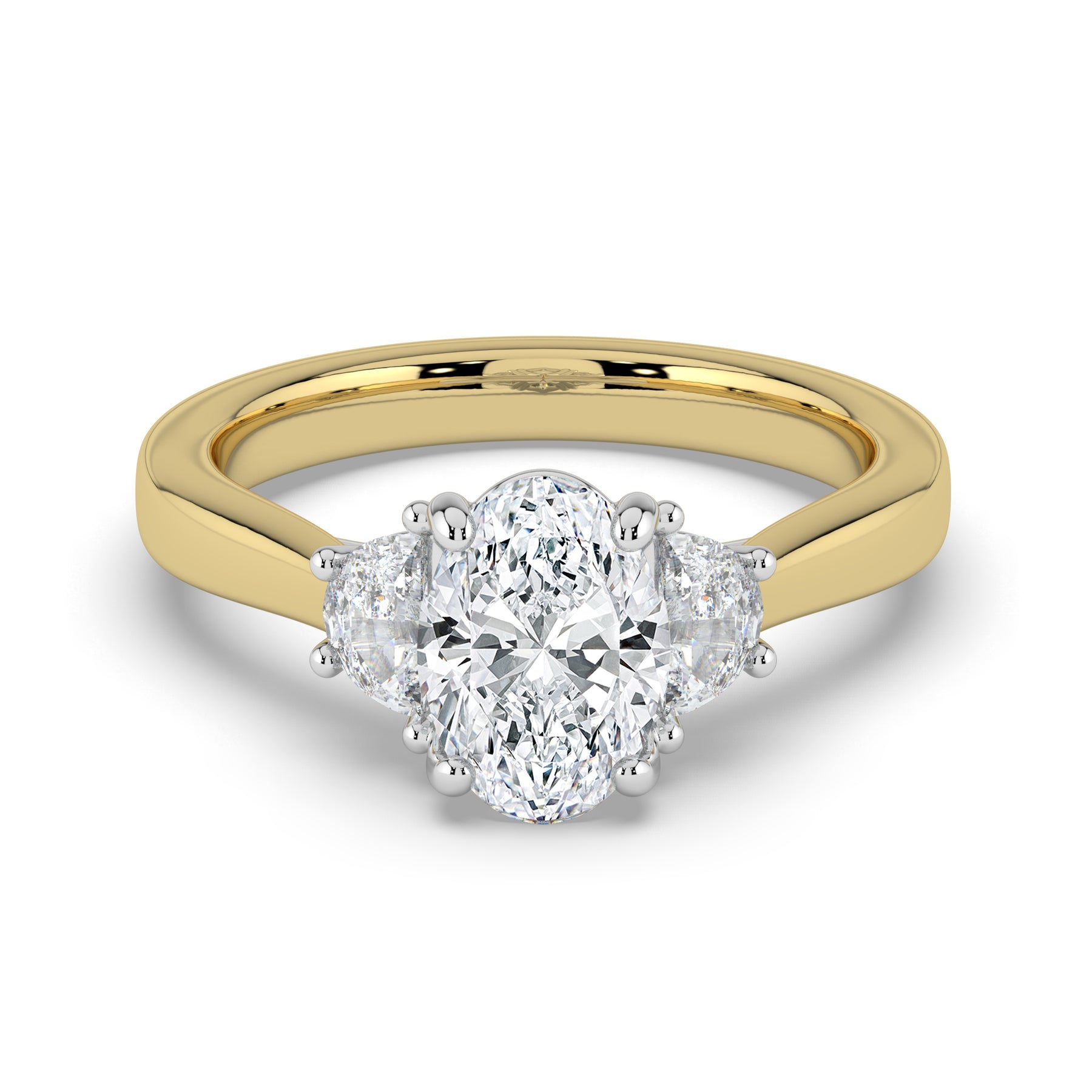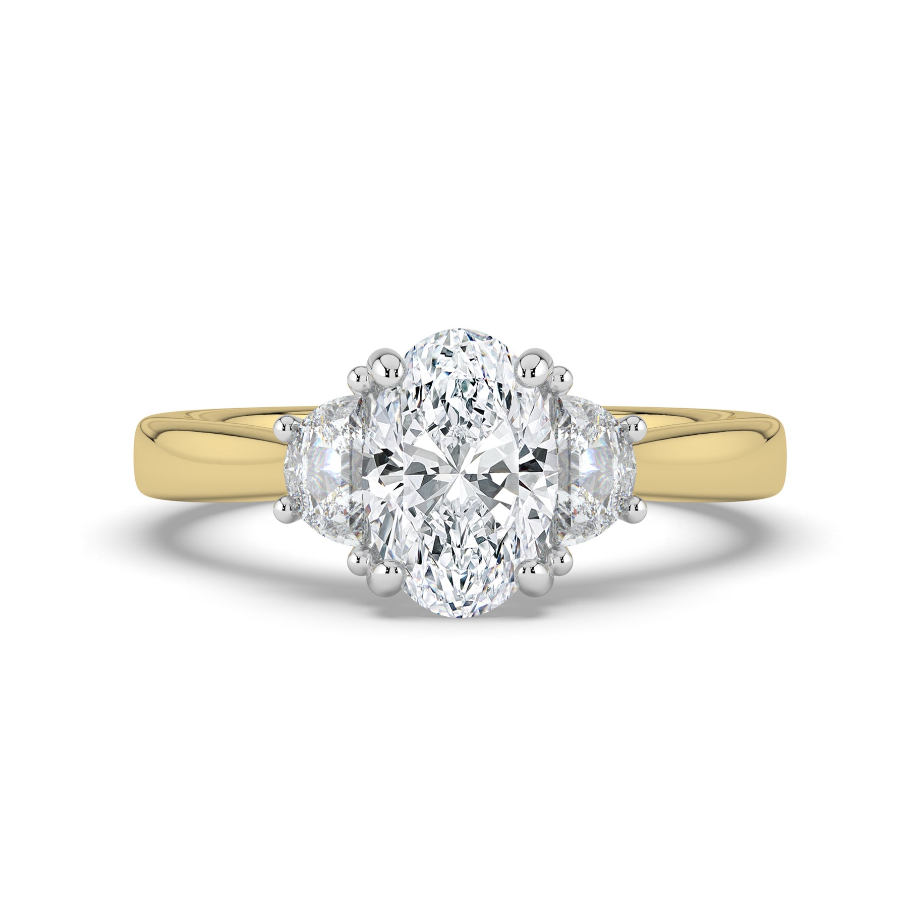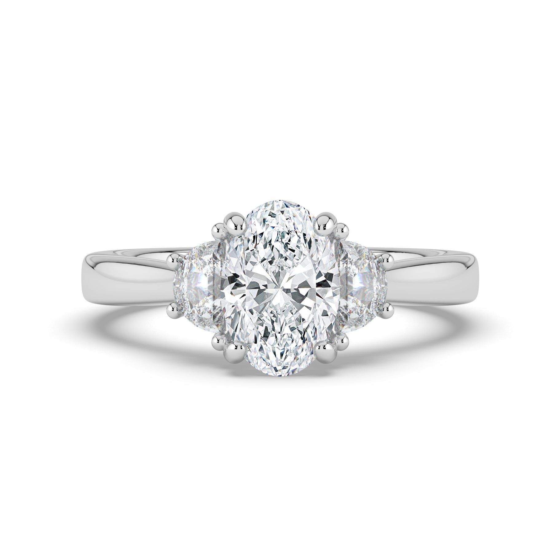 Oval cut centre stone with Half Moon shoulder stones