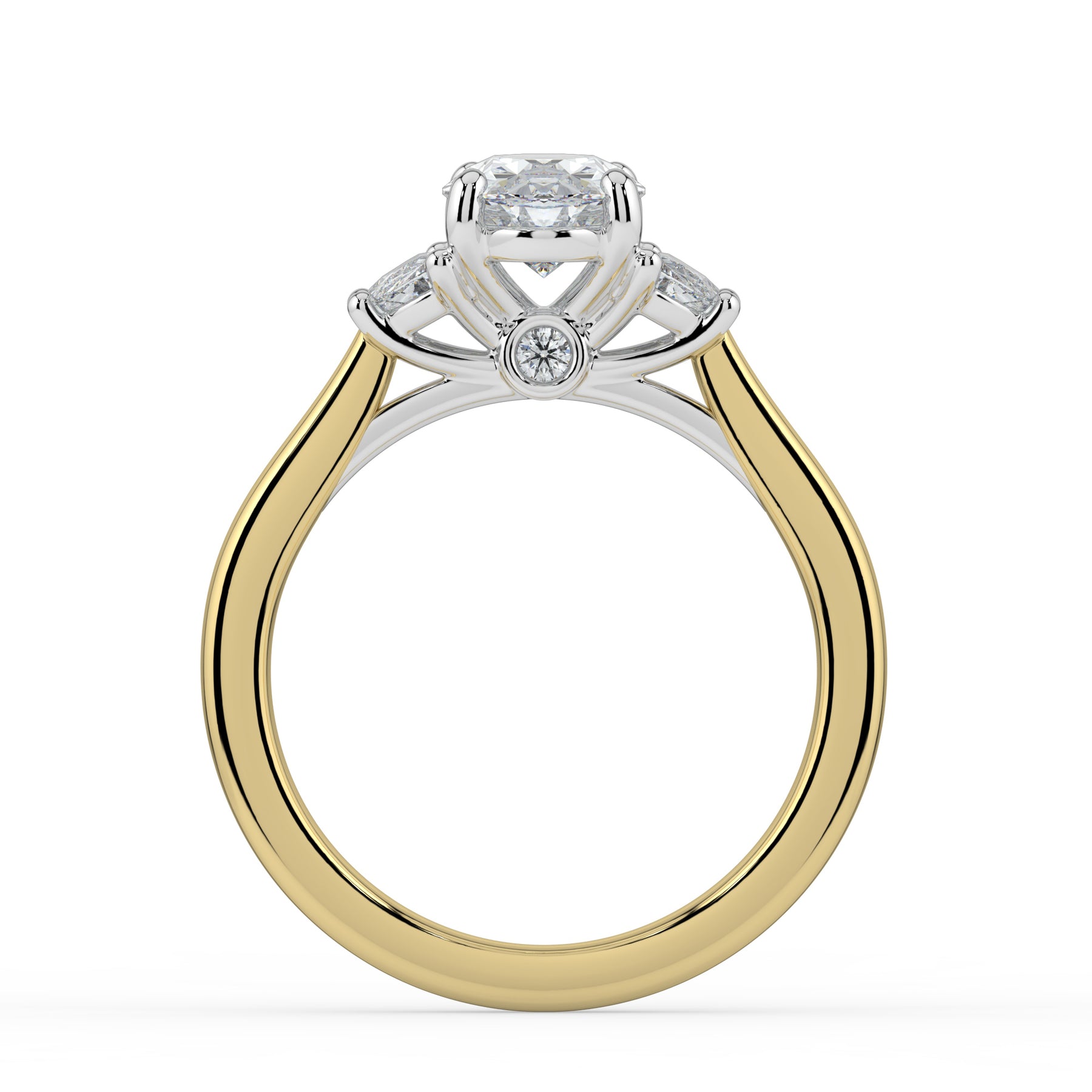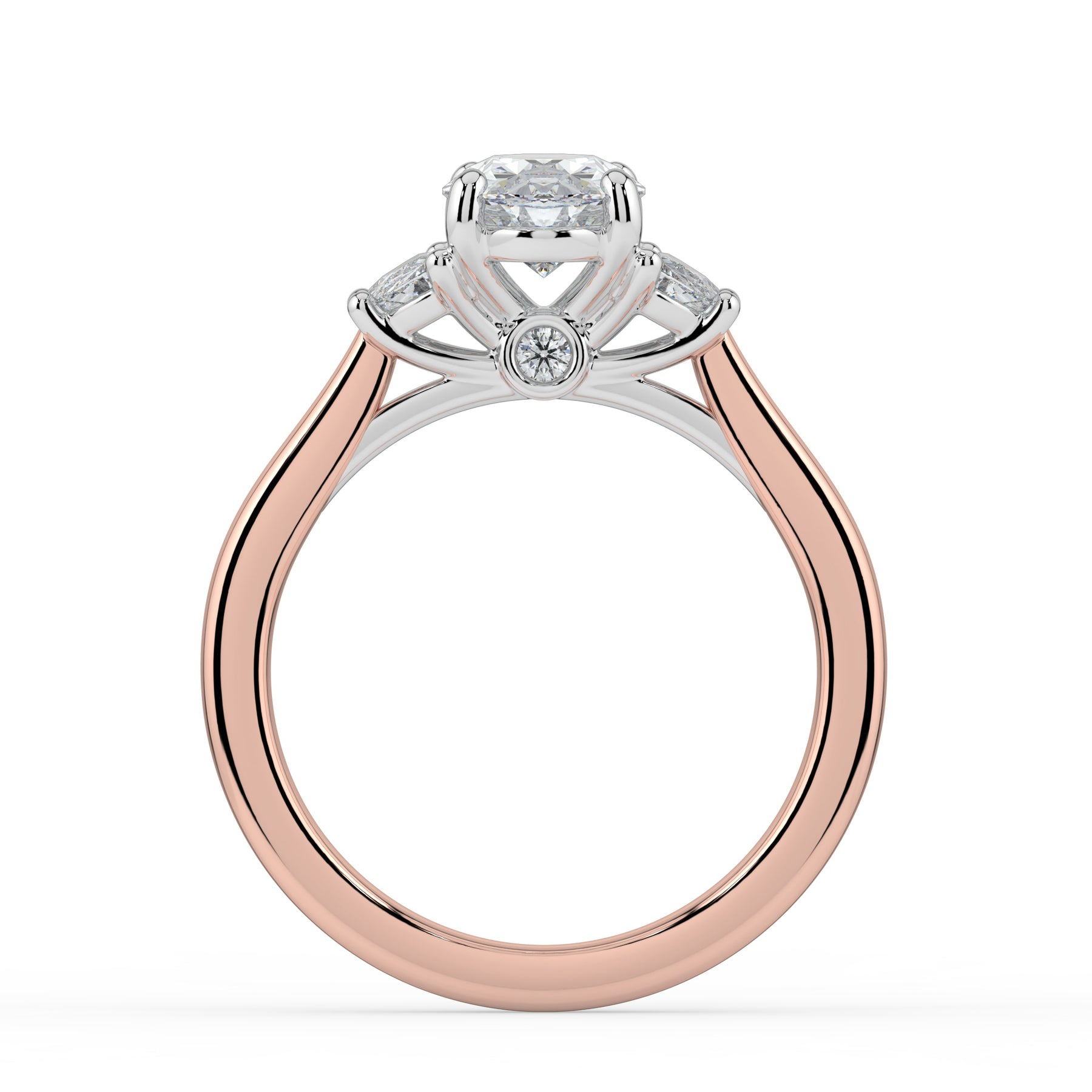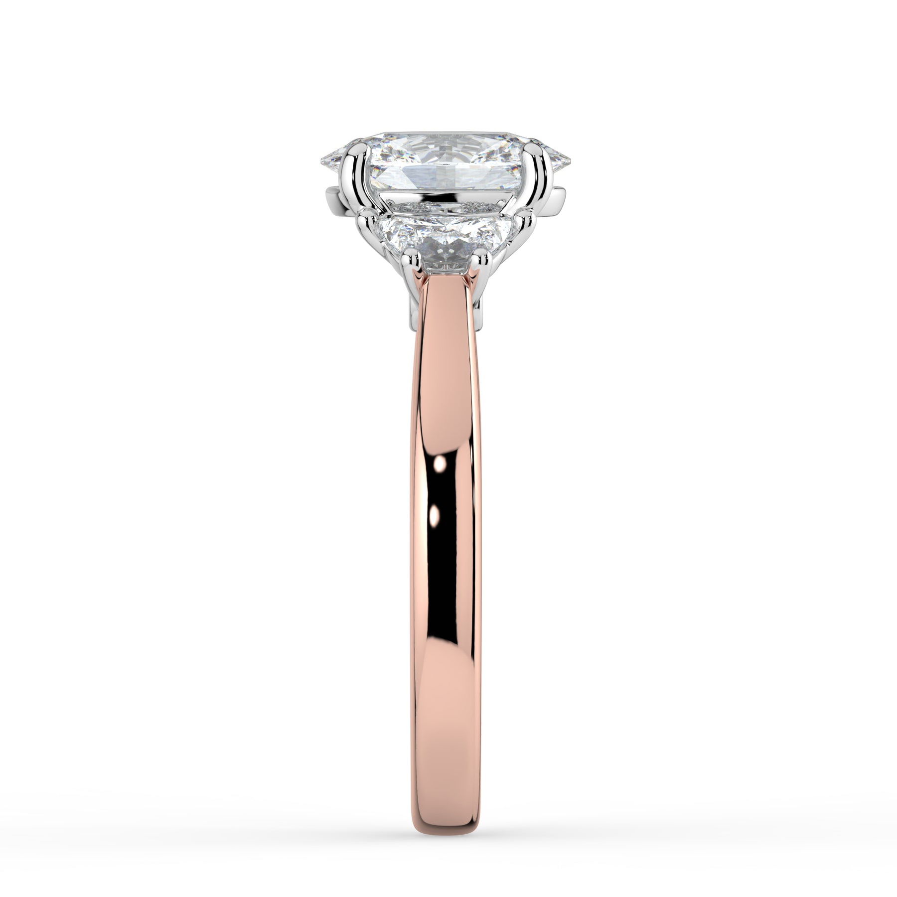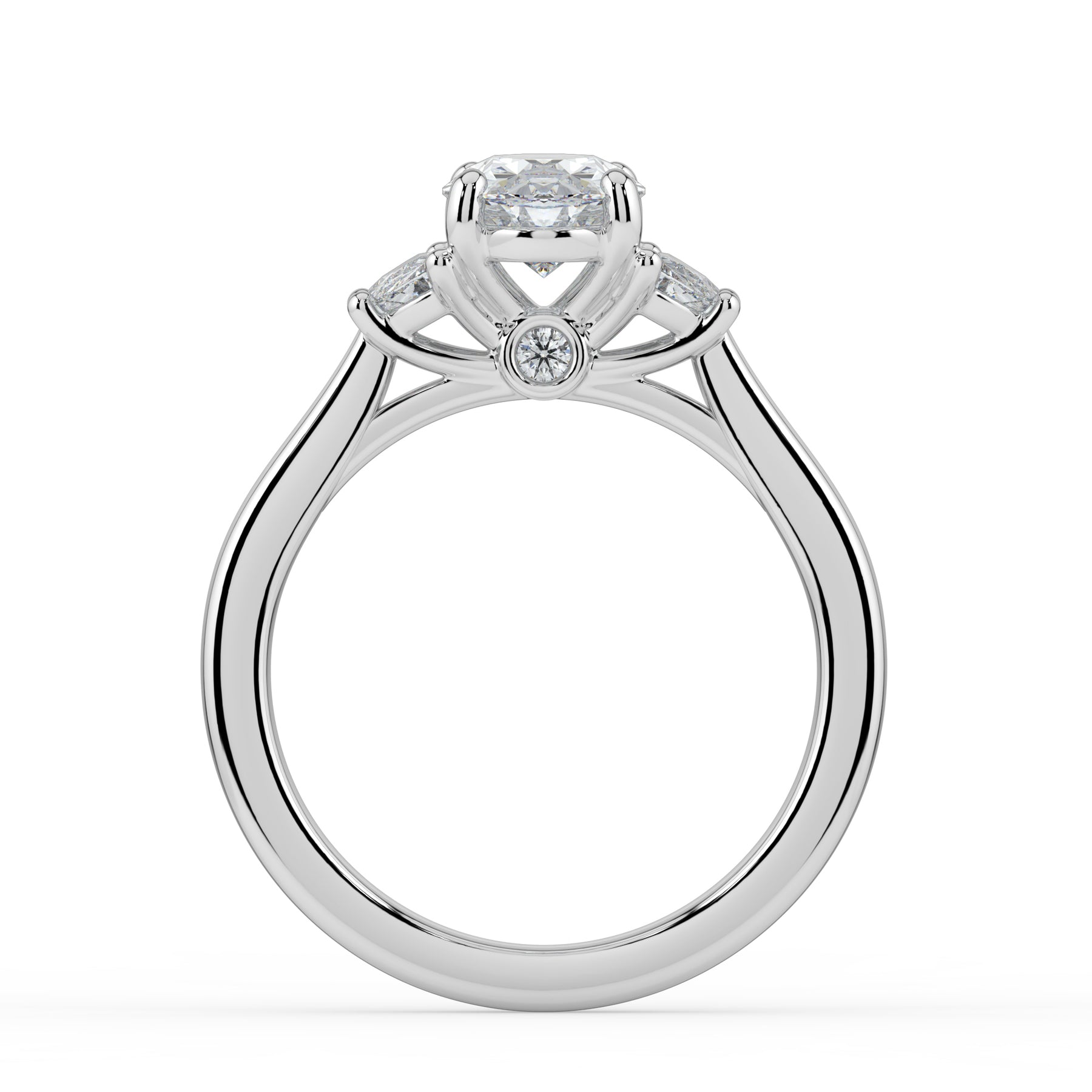 Oval cut centre stone with Half Moon shoulder stones